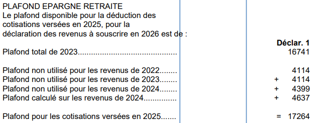 Vous trouverez votre plafond d’épargne retraite en page 3 de votre avis d’imposition.